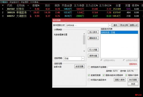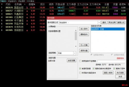 {只做盘中9:30~10:30预警用,不当盘前盘后选股用,设置完条件,盘中满足条件就自动跳出个股决策,盘前或盘后选股,是条件发生之后意义不大}